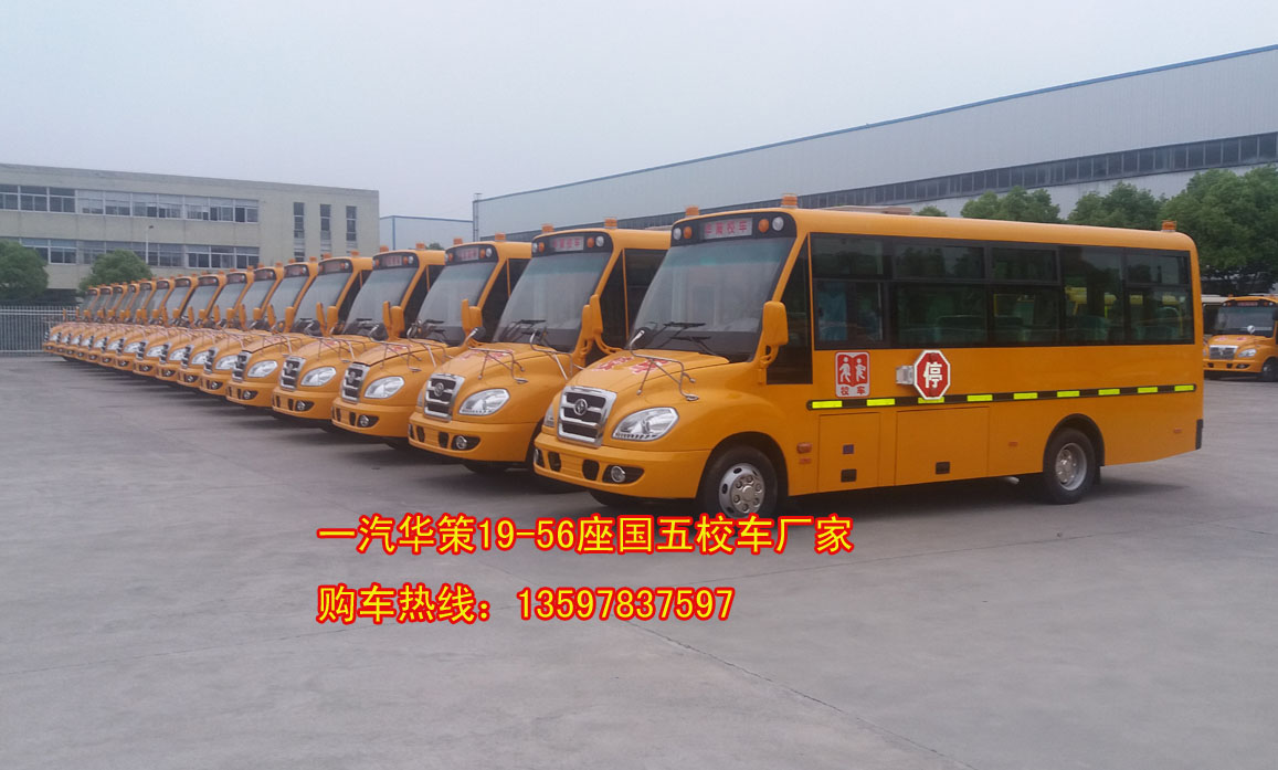 一汽華策(國(guó)五)56座小學(xué)生校車(原一汽解放校車)采用東風(fēng)底盤,玉柴發(fā)動(dòng)機(jī),老品牌,高品質(zhì),低價(jià)位。歡迎各地客戶來廠來電參觀訂購(gòu)洽談,廠家直銷熱線:13597837597