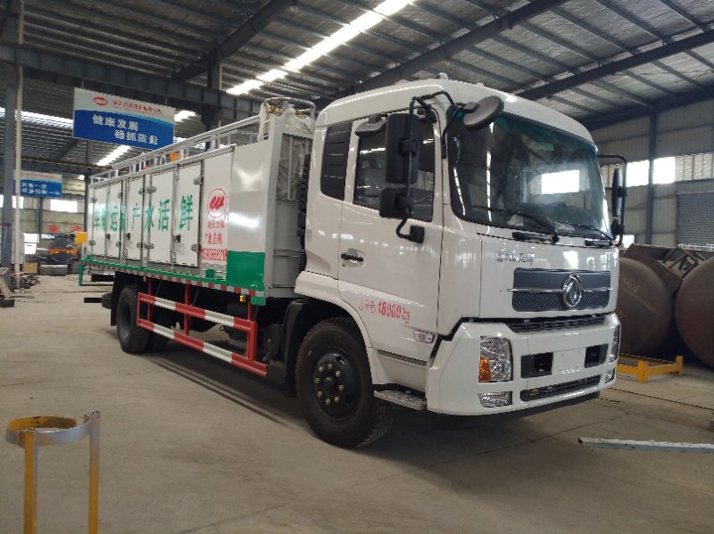 東風(fēng)天錦鮮活魚運(yùn)輸車采用東風(fēng)天錦底盤,康明斯180國(guó)五馬力,原廠空調(diào),罐體容積8-10立方米方,前盤后鼓,帶衛(wèi)星定位行車記錄儀、ABS,10.00-20輪胎,國(guó)五排放標(biāo)準(zhǔn),能拉10000斤活魚,4.7米軸距,獨(dú)立泵房制氧機(jī)組,活魚運(yùn)輸車的運(yùn)載活魚能力通常為每立方米水體裝魚200千克,魚水比為1∶1,可以根據(jù)魚的規(guī)格和運(yùn)輸時(shí)間的長(zhǎng)短靈活掌握。用壓縮液態(tài)氧和氣泵充氧,運(yùn)魚水溫是10~15℃,途經(jīng)5-48個(gè)小時(shí)路程,運(yùn)輸成活率達(dá)99%以上。 罐體堅(jiān)固耐用,可以使用多年,一次性投資長(zhǎng)期受益,運(yùn)輸成本不高,是目前長(zhǎng)途運(yùn)輸活魚的好方法。全新專利產(chǎn)品,鮮活水產(chǎn)品運(yùn)輸車,主要運(yùn)送活魚類,該車擁有自動(dòng)供氧設(shè)備,自動(dòng)恒溫制冷,循環(huán)過濾水質(zhì),吊機(jī)卸魚,聚氨酯發(fā)泡保溫效果好,5個(gè)獨(dú)立分倉(cāng)在長(zhǎng)途運(yùn)輸過程中不換水不加冰無死魚等優(yōu)點(diǎn)。購(gòu)車電話:13597837597