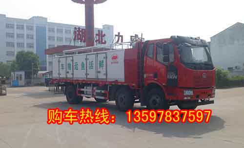 解放前四后四活魚運(yùn)輸車(14方鮮活魚運(yùn)輸車)拉魚重量14000斤,采用J6半浮平頂小排半駕駛室,電動(dòng)玻璃升降,手動(dòng)后視鏡,駕駛室座椅為機(jī)械減振座椅,大柴220馬力發(fā)動(dòng)機(jī)。陜齒8檔變速箱,10.00鋼絲胎,恒溫自動(dòng)空調(diào),電動(dòng)液壓舉升裝置,300L剛油箱,2個(gè)210升壓縮液態(tài)氧罐(一罐液態(tài)氧可用30個(gè)小時(shí)),活魚運(yùn)輸車的運(yùn)載活魚能力通常為每立方米水體裝魚200千克,魚水比為1∶1,可以根據(jù)魚的規(guī)格和運(yùn)輸時(shí)間的長短靈活掌握。夏天控制水溫10~18℃,長途運(yùn)輸不用換水不加冰塊,我們有獨(dú)立的恒溫制冷設(shè)備,罐體采用鋁罐制作,罐體外部有10mm厚的保溫層,超強(qiáng)保溫冷氣不外漏,罐體與保溫層中間留有通風(fēng)道,可以快速制冷,此外我們還有循環(huán)過濾系統(tǒng),把活魚的糞便及水里的臟東西過濾出來,保證水不變質(zhì)。罐體堅(jiān)固耐用,可以使用多年,一次性投資長期受益,運(yùn)輸成本不高,是目前長途運(yùn)輸活魚的好方法。全新專利產(chǎn)品,鮮活水產(chǎn)品運(yùn)輸車,主要運(yùn)送活魚類,該車擁有自動(dòng)供氧設(shè)備,自動(dòng)恒溫制冷功能,循環(huán)過濾系統(tǒng),保溫效果好,7個(gè)獨(dú)立分倉在夏季長途運(yùn)輸過程中不換水不加冰無死魚等優(yōu)點(diǎn)。在適溫范圍內(nèi),水溫越高,魚類代謝強(qiáng)度越大,對氧氣的需求也越大,同時(shí)代謝廢物也增多,易造成水質(zhì)污染,使得活力下降。因此,降溫是提高魚類運(yùn)輸存活率的一個(gè)有效措施。購車電話:13597837597