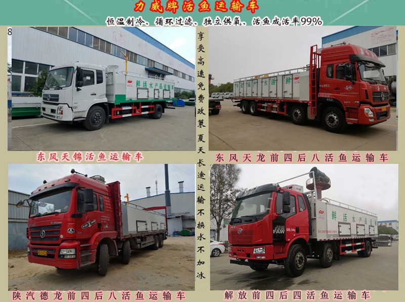 專(zhuān)業(yè)運(yùn)魚(yú)車(chē),力威牌魚(yú)車(chē)一個(gè)專(zhuān)業(yè)的能跑長(zhǎng)途的魚(yú)車(chē)市場(chǎng)上并不多見(jiàn),尤其是夏天溫度高,長(zhǎng)途運(yùn)輸溫度達(dá)到20度以上魚(yú)就容易死亡,力威牌魚(yú)車(chē)帶的都有制冷機(jī)組,夏天可以把溫度控制在10度到18度左右,還有循環(huán)過(guò)濾功能,能把魚(yú)的糞便及水的雜質(zhì)過(guò)濾出來(lái),保持水的清潔度,配備活魚(yú)起吊設(shè)備,配備制冷系統(tǒng),有恒溫制泠 ,自動(dòng)供氧,水循環(huán)過(guò)濾,保溫效果好,獨(dú)立分倉(cāng),上魚(yú)快,卸魚(yú)方便,途中不用加冰不用換水。適合長(zhǎng)途高溫氣候鮮活魚(yú)運(yùn)輸。東風(fēng)天錦國(guó)五鮮活魚(yú)運(yùn)輸車(chē)享受綠色通道,適合長(zhǎng)途運(yùn)輸?shù)r魚(yú),鮮活魚(yú)成活率99%,是夏季拉魚(yú)的好幫手。