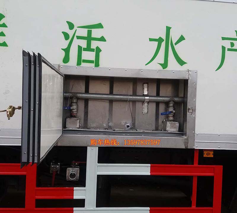 4、該車(chē)右側(cè)安裝卸魚(yú)口,卸魚(yú)口采用環(huán)布防止卸卸魚(yú)時(shí)對(duì)魚(yú)有劃傷,卸魚(yú)時(shí)有專(zhuān)門(mén)的閥門(mén)控制。減輕勞動(dòng)強(qiáng)度,提升裝卸效率。