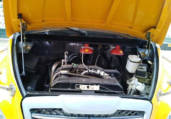 發(fā)動(dòng)機(jī)方面,該車(chē)選用朝柴發(fā)動(dòng)機(jī),采用發(fā)動(dòng)機(jī)ECU限速,限速80km/h。該車(chē)安裝了帶衛(wèi)星定位功能行駛記錄儀,廣州科密汽車(chē)電子控制技術(shù)股份有限公司生產(chǎn)的ABS系統(tǒng);同時(shí)可選裝空調(diào)和外擺門(mén)。