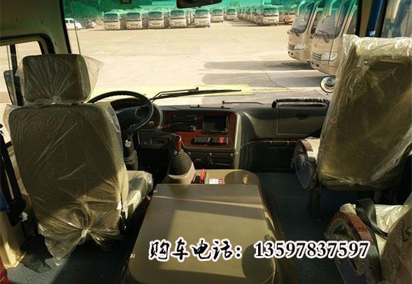 牡丹牌MD6768KD5型國(guó)五30座線路客車,整車長(zhǎng): 7、66米,寬:2、26米,高:2、83米(帶空調(diào)2、96米)。采用東風(fēng)底盤型號(hào)為: EQ6650K5AC1,玉柴發(fā)動(dòng)機(jī)型號(hào)為: YC4S140一50 (103干瓦),輪距: 1830/1600, 車架為:壓制大梁,懸掛/穩(wěn)定桿為:多片簧9/11,轉(zhuǎn)向系統(tǒng)為:動(dòng)力轉(zhuǎn)向,行車制動(dòng)為:氣制動(dòng),ABS帶自動(dòng)調(diào)整臂,帶排氣制動(dòng),氣壓由原來(lái)的8個(gè)壓增加到現(xiàn)在的10個(gè)壓,全車四輪盤剎,剎車片磨損報(bào)警,前輪單胎胎壓報(bào)警,駐車制動(dòng)為:手剎,無(wú)輔助制動(dòng)。輪胎型號(hào)為: 7.50R16。整車車身采用脫殼式,前后圍鐵壓制件,普通駕駛門,乘客門為手動(dòng)一體折疊門,前擋風(fēng)為夾層玻璃,后擋風(fēng)為鋼化玻璃,有一鍵爆破器。側(cè)窗為- -體式封閉玻璃帶小玻璃窗,頂置天窗一個(gè),后視鏡,普通乘客座椅為2+2布置,雙座連體,靠背不可調(diào),不可橫移,駕駛座椅靠背可調(diào)節(jié),前后可調(diào)節(jié)。全車安全帶報(bào)警,采用頂置中央空調(diào)豪華內(nèi)飾,車內(nèi)照明為頂燈2個(gè),地板面為竹夾板加普通地板革,普通儀表臺(tái),后行李箱,前遮陽(yáng)板,全車窗簾,前風(fēng)檔大功率除霜機(jī)( 100W),視聽(tīng)系統(tǒng)有MP3收放機(jī), 2個(gè)揚(yáng)聲器。倒車影像,監(jiān)控?cái)z像頭,監(jiān)控顯示屏。上車扶手, 滅火器,內(nèi)后視鏡,前雨刮器。車身顏色由客戶定。