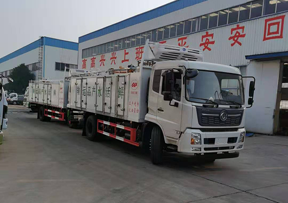 力威鮮活水產(chǎn)品運輸車 重慶東風(fēng)天錦運魚車(5噸10方活魚運輸車)屬于鮮活水產(chǎn)品運輸車有燃油全國上戶無憂輕松辦理營運手續(xù),年審不用吊罐優(yōu)于市場上其它水產(chǎn)品運輸車,整車有駕駛區(qū)和運魚箱兩部分組成、主要功能有:恒溫制冷、水溫監(jiān)控顯示、獨立供氧、氧氣壓力調(diào)節(jié)顯示、水循環(huán)過濾系統(tǒng)、雙層保溫、獨立分倉、吊機卸魚。獨立供氧系統(tǒng):2瓶液態(tài)氧罐通過納米管連接到各個魚倉內(nèi),通過減壓閥在駕駛室內(nèi)調(diào)節(jié)氧氣大小,把氧氣送到每個魚艙,保證每條魚能吸收到新鮮氧氣,大大增加成活率,一罐液態(tài)氧能用30個小時以上,恒溫制冷技術(shù):獨立柴油發(fā)電機帶動制冷機壓縮機運行,通過水制冷原理快速降低水溫,夏天把水溫控制在15-18度左右,鋁合金罐體好處:鋁制品材質(zhì)輕導(dǎo)熱性能好無污染不易變形是好運魚材質(zhì),能快速降低水溫功不可沒。聚氨酯發(fā)泡保溫:通過冰箱保溫原理,用聚氨酯材質(zhì)耐用不變形成本低,讓魚倉內(nèi)部與外部空氣隔絕,始終保持水溫不上升。裝魚口下沉工藝俗話說滿灌水不蕩半灌水蕩,裝魚口下沉是把魚箱水裝滿,運輸中水裝不滿來回動蕩,魚受驚會到處亂撞而受傷,裝魚口下沉就會減少活魚撞傷的危害。循環(huán)過濾系統(tǒng):每臺車搭配發(fā)動機組,帶動循環(huán)過濾泵工作對每個倉的水質(zhì)進行清理,把魚糞便及水里的雜質(zhì)通過過濾泵過濾出來,保持水質(zhì)干凈,增大魚的成活率,吊機裝卸魚:每臺車配帶一個小型吊機,節(jié)省人力物力,吊機能360度旋轉(zhuǎn),使用起來很方便,水溫監(jiān)測系統(tǒng):在每個魚倉底部安裝一個傳感器,傳感器把魚倉水溫傳輸?shù)今{駛室顯示器上,隨時能看到魚倉水溫的變化,夜間照明裝置:駕駛室后面留有插座及線路,夜間裝魚可以照明,人性化設(shè)計,魚倉左邊為放水口:蝶閥開關(guān)結(jié)實耐用,右邊出魚口環(huán)布材質(zhì),防止卸魚造成魚鱗劃傷,根據(jù)車型大小可以做5-6個獨立分倉,根據(jù)魚的品種不同分裝在不同的倉體內(nèi)。