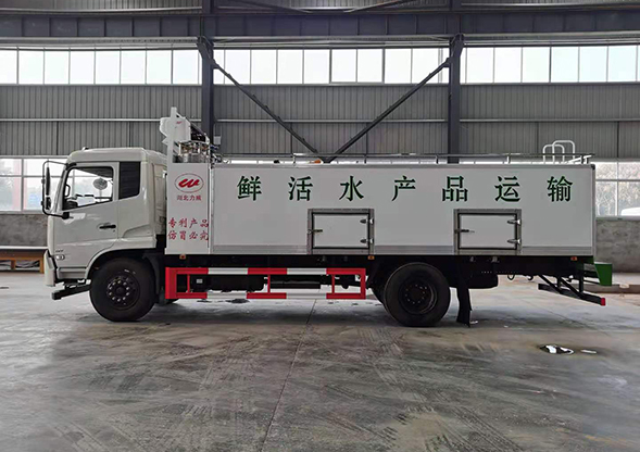 5、罐體截面采用方形,有效降低了整車的自重和重心,提高了載重量;減少行車中的震動和搖晃,提高了運(yùn)輸?shù)钠椒(wěn)性。增加了運(yùn)輸中魚的成活率及裝載量,可將魚的成活率提高到99%。