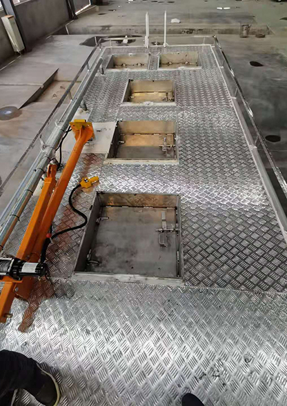 6、在各個艙的底部設(shè)有排污槽口和過濾裝置,可將魚的排泄物及時隔離,有效的避免了這些排泄物被魚等水產(chǎn)的游動翻滾攪起再次污染水體,提高運(yùn)輸中魚的成活率。