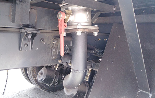4、該車右側(cè)安裝卸魚(yú)口,卸魚(yú)口采用環(huán)布防止卸卸魚(yú)時(shí)對(duì)魚(yú)有劃傷,卸魚(yú)時(shí)有專門(mén)的閥門(mén)控制。減輕勞動(dòng)強(qiáng)度,提升裝卸效率。