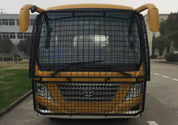 華新牌虎園投食觀光車下線投入使用了,動(dòng)物園觀光車防爆玻璃開(kāi)投食孔,冷暖空調(diào),折疊門(折疊門上加防護(hù)網(wǎng)),鋁合金地板,公交座椅,輪胎處做防護(hù),外形尺寸(mm):8540×2440×3250 底盤型號(hào)/生產(chǎn)廠:江淮三類底盤 車身結(jié)構(gòu) 三級(jí)踏步半承載式 。全景夾膠前風(fēng)擋;鋼化后風(fēng)擋,前后檔加防護(hù)網(wǎng),網(wǎng)孔為400X200;側(cè)窗上部為5mm粘貼玻璃,中部為中空玻璃推拉窗,下部為粘貼式中空玻璃。兩邊側(cè)窗加防護(hù)網(wǎng),網(wǎng)內(nèi)表面與側(cè)窗玻璃之間的間隙要大于50mm,兩側(cè)防護(hù)網(wǎng)上面用鉸鏈四點(diǎn)固定,前后和下面用插銷固定,加緩沖墊,網(wǎng)孔60×60,兩側(cè)各有兩個(gè)防護(hù)網(wǎng)中間加開(kāi)300×300的照像孔。側(cè)窗內(nèi)表面上下位置加兩根銀灰色鋼管扶手,表面加防寒套。注:所有的防護(hù)網(wǎng)用不銹鋼圓鋼制做。