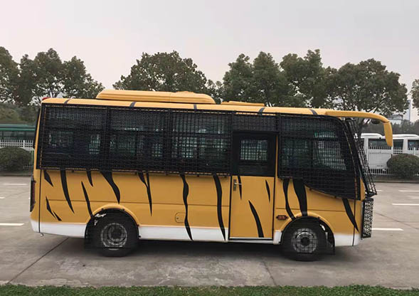 虎園投食觀光車從備料、焊裝、涂裝、吊裝到總裝,無(wú)不凝聚著公司多個(gè)部門及各承攬加工班組的智慧和心血,每一道工藝品質(zhì),每一細(xì)枝末節(jié)都體現(xiàn)著“客車人”的精益求精、追求卓越。其主要的創(chuàng)新點(diǎn):一是采用知名品牌東風(fēng)三類底盤,玉柴后置發(fā)動(dòng)機(jī),車內(nèi)空間大,兩排背靠背座椅,能帶給您良好的觀賞體驗(yàn)!二是開(kāi)發(fā)全新的車內(nèi)內(nèi)飾、空調(diào)風(fēng)道及儀表臺(tái),采用密封性、減震性、安全性、綠色節(jié)能環(huán)保的材料,打造客戶的“私人定制”。三是外觀設(shè)計(jì)新穎獨(dú)到,鐵黃面漆配上多彩的線條圖案,該車“虎”氣十足,加之堅(jiān)不可摧的外部安全防護(hù)網(wǎng),不僅保障了車身的安全性能,同時(shí)又滿足了游客近距離接觸百獸之王——“親”虎的需求!廠家直銷熱銷:13597837597