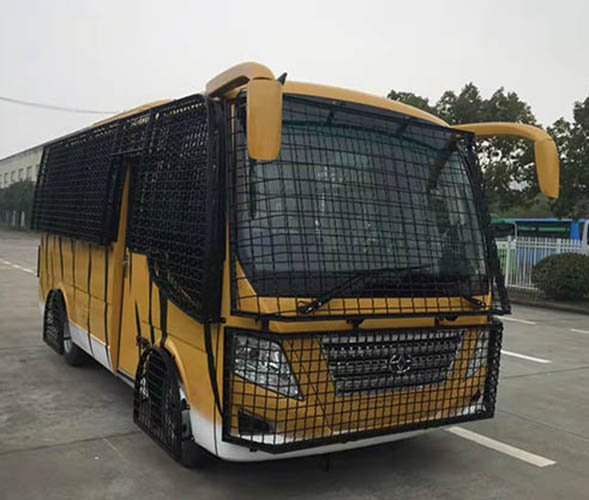 虎園投食觀光車從備料、焊裝、涂裝、吊裝到總裝,無不凝聚著公司多個(gè)部門及各承攬加工班組的智慧和心血,每一道工藝品質(zhì),每一細(xì)枝末節(jié)都體現(xiàn)著“做車人”的精益求精、追求卓越。其主要的創(chuàng)新點(diǎn):一是采用知名品牌東風(fēng)三類底盤,玉柴后置發(fā)動(dòng)機(jī),車內(nèi)空間大,兩排背靠背座椅,能帶給您良好的觀賞體驗(yàn)!二是開發(fā)全新的車內(nèi)內(nèi)飾、空調(diào)風(fēng)道及儀表臺(tái),采用密封性、減震性、安全性、綠色節(jié)能環(huán)保的材料,打造客戶的“私人定制”。三是外觀設(shè)計(jì)新穎獨(dú)到,鐵黃面漆配上多彩的線條圖案,該車“虎”氣十足,加之堅(jiān)不可摧的外部安全防護(hù)網(wǎng),不僅保障了車身的安全性能,同時(shí)又滿足了游客近距離接觸百獸之王——“親”虎的需求!廠家直銷熱銷:13597837597