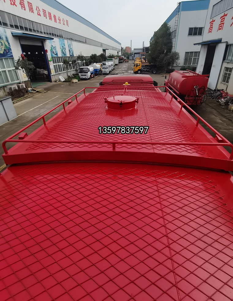陜田壓裂砂罐車! 國產(chǎn)180油缸(佳恒),邊4底5錳板,貳縱梁 、貫通軸,油箱右前置、備胎廠標,拐臂樣式。 2、側(cè)板加強,箱內(nèi)部帶拉桿防漲。后錐帶龜背和轉(zhuǎn)柄式手動大卸料口3個,加焊壹個直徑25小梯子(加寬),龜背厚度5mm。舉升后離地0.9米。箱后側(cè)安裝2個固定爬梯加寬加粗(后橋上方位置),整體式擋泥板。3、罐體頂蓋加強,中間部分開側(cè)開式活動頂蓋(按照客戶要求尺寸),防水密封,頂蓋下面安裝鋼絲網(wǎng)(過濾用,另在鋼絲網(wǎng)上開一個維修人孔),活動頂蓋中間一個加大罐口。罐頂頂部兩側(cè)安裝鋼絲網(wǎng)走到以及活動護欄。罐內(nèi)做灰色防銹底漆。