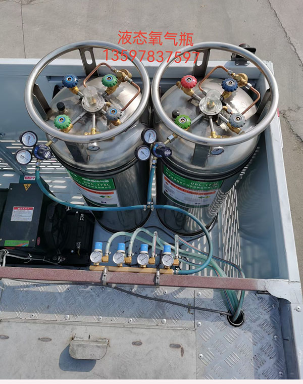 新款8噸水冷鮮活海產(chǎn)品專用運(yùn)輸車 一臺(tái)車標(biāo)配兩瓶液氧罐(根據(jù)路程可以加裝3瓶、4瓶液氧罐),液態(tài)氧通過納米管連接到每個(gè)魚倉底部,讓每條魚能吸收到充分氧氣,通過減壓閥調(diào)節(jié)氧氣大小,減壓閥可以在駕駛室調(diào)節(jié),一瓶液氧罐210升,一罐能用30個(gè)小時(shí)以上。